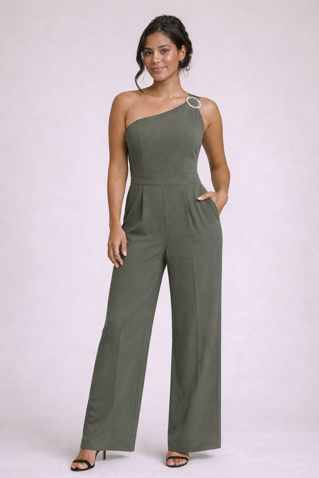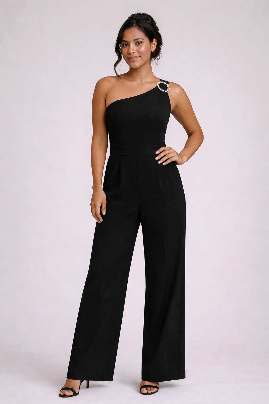 Sua modelagem de um ombro só cria um visual sofisticado e feminino, enquanto os recortes estruturados alongam a silhueta e garantem um caimento impecável. A fivela delicada conecta a alça frontal às costas, trazendo personalidade e equilíbrio à peça.