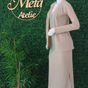 O Vestido Elegance, confeccionado em malha canelada premium, modela perfeitamente o corpo sem abrir mão do conforto. O Cardigan Soft Chic complementa o look com um toque sofisticado, ideal para dias mais fresquinhos ou para criar produções versáteis e elegantes.
